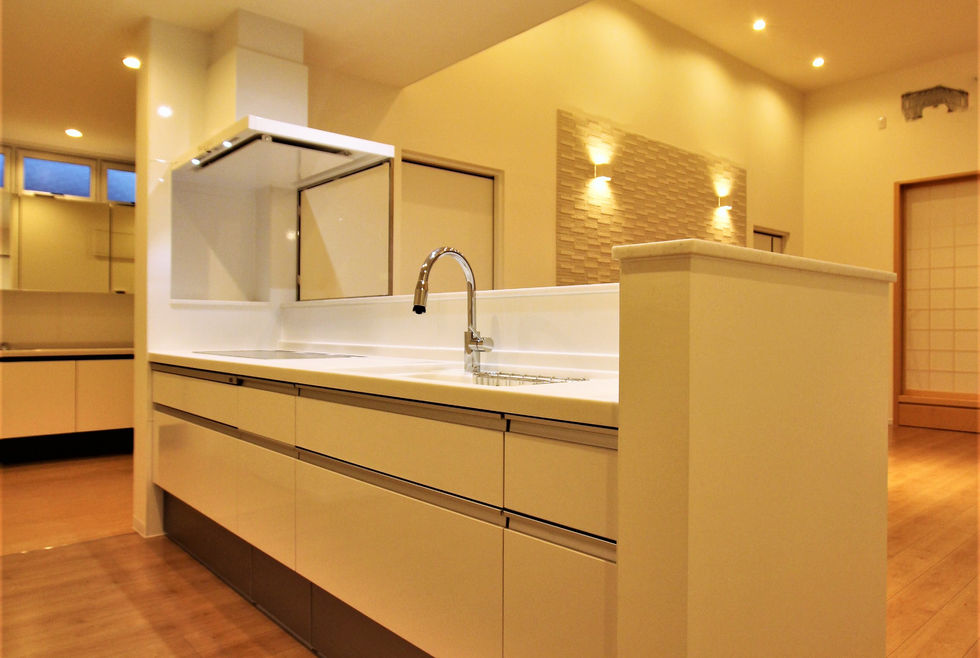 表と裏側の二面道路であった事と、まとまった大きな庭が欲しいとの要望があったので敷地形状に合わせたへの字型間取りをご提案しました。
