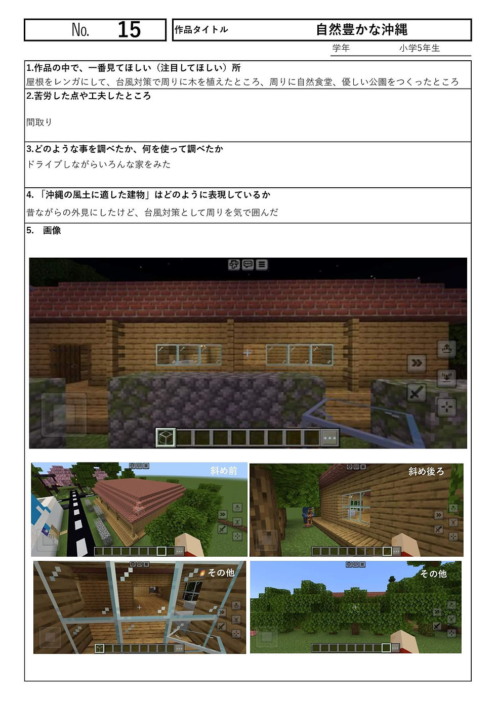 「第一回 謝花組・マインクラフト建築コンテスト」は、学校教育の現場でも活用されている『マインクラフト』を使って、子どもたちの自由な発想と創造力をカタチにする建築コンテストです。